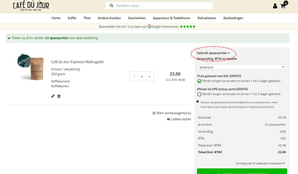 Możesz wymienić zebrane punkty za rabat na swoje zamówienie poprzez koszyk. Jest to możliwe tylko wtedy, gdy kwota zamówienia przekracza 10 €. W swoim koszyku w prawym górnym rogu zobaczysz opcję „użyj punktów lojalnościowych” (nad blokiem kosztów wysyłki), jeśli masz wystarczającą liczbę punktów. Każdy punkt lojalnościowy ma wartość 0,01 €, a Ty sam decydujesz, ile punktów chcesz wykorzystać na rabat.